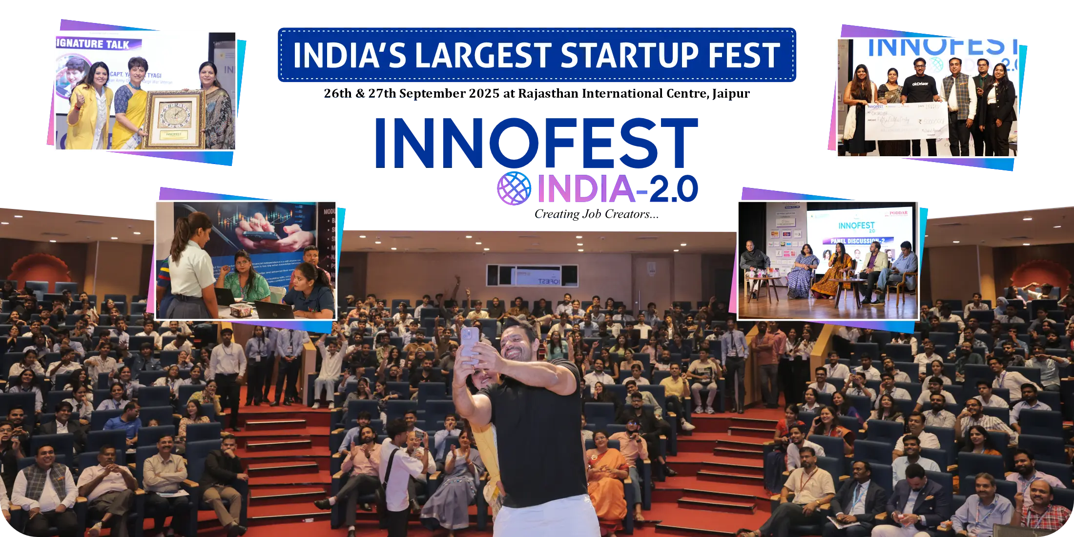 As Poddar remains committed to fostering job creators, we organized Rajasthan's Largest Startup Fest – InnoFest, a three-day fest at Rajasthan International Centre. The fest was inaugurated by Honorable Governor Shri Haribhau Kisanrao Bagade, with strong support from the government. Hosted on a global scale, the event saw participation from international companies like AJMS Global. Additionally, 10+ Shark Tank startups took part, competing for funding from investors in our exclusive 10-Minute Millionaire Challenge.