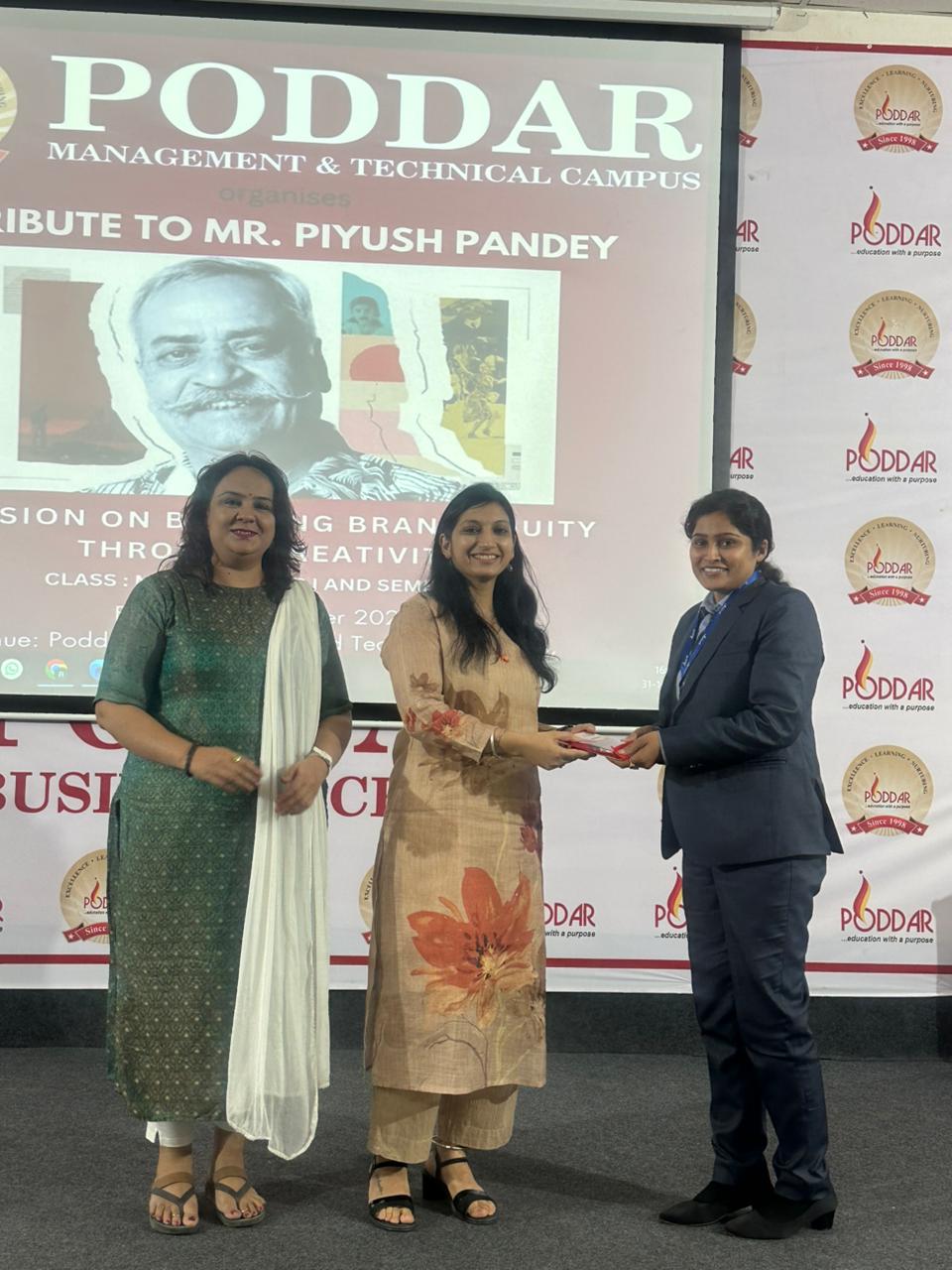 At Poddar Management and Technical Campus, the Creative Club and Entrepreneur Club organized a special session — A Tribute to the Legend of Indian Advertising, Mr. Piyush Pandey.