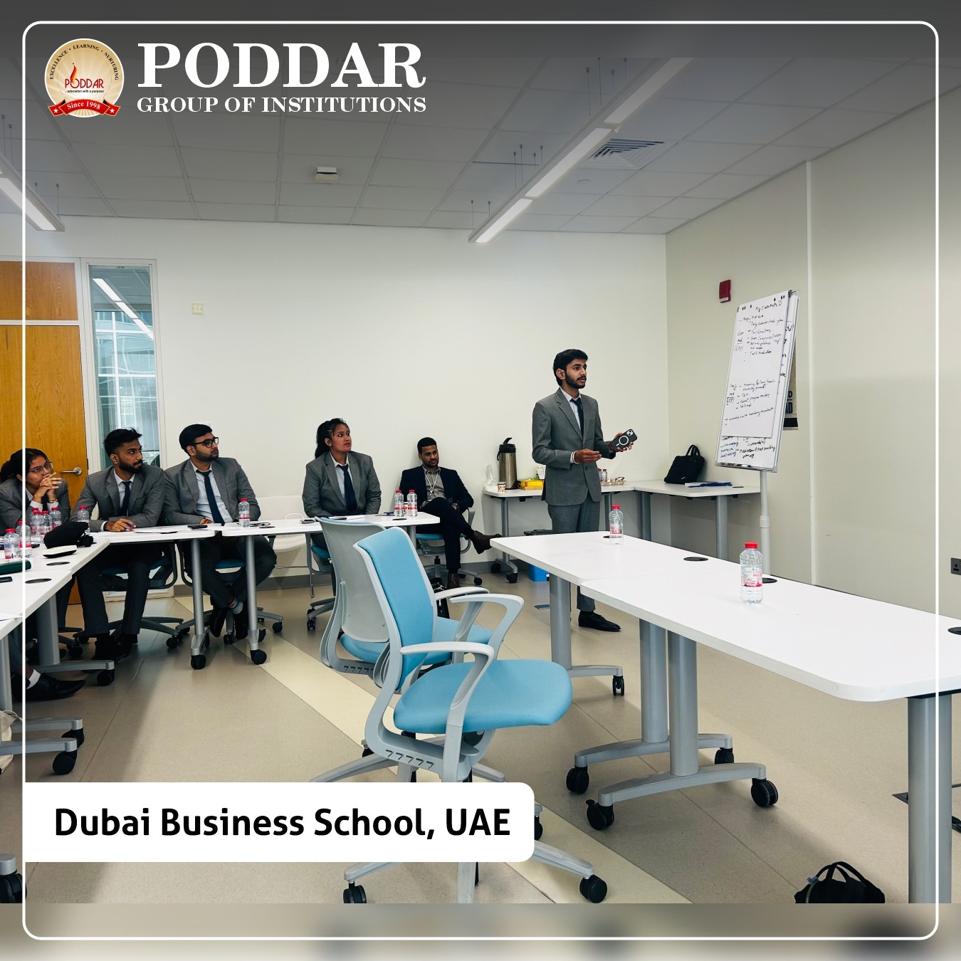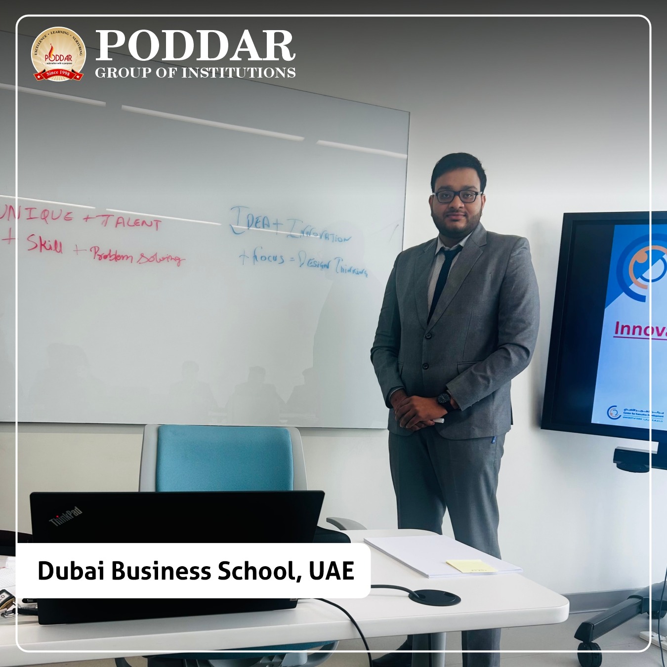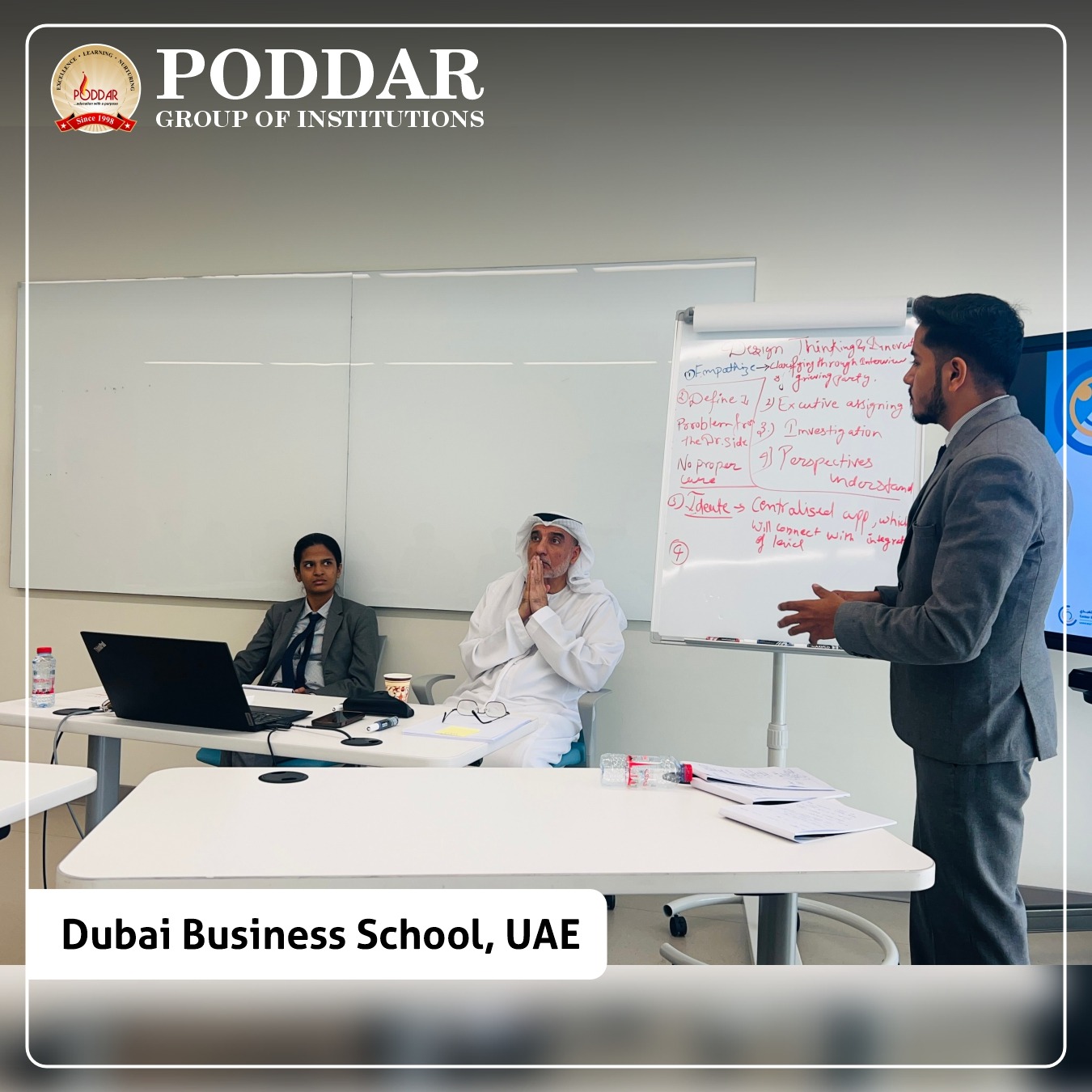 As part of the ongoing Global Immersion Program, students of Poddar Business School visited the Dubai Business School and attended an engaging session on Innovation and Design Thinking conducted by Dr. Mohammed Ahmed Al Essa.