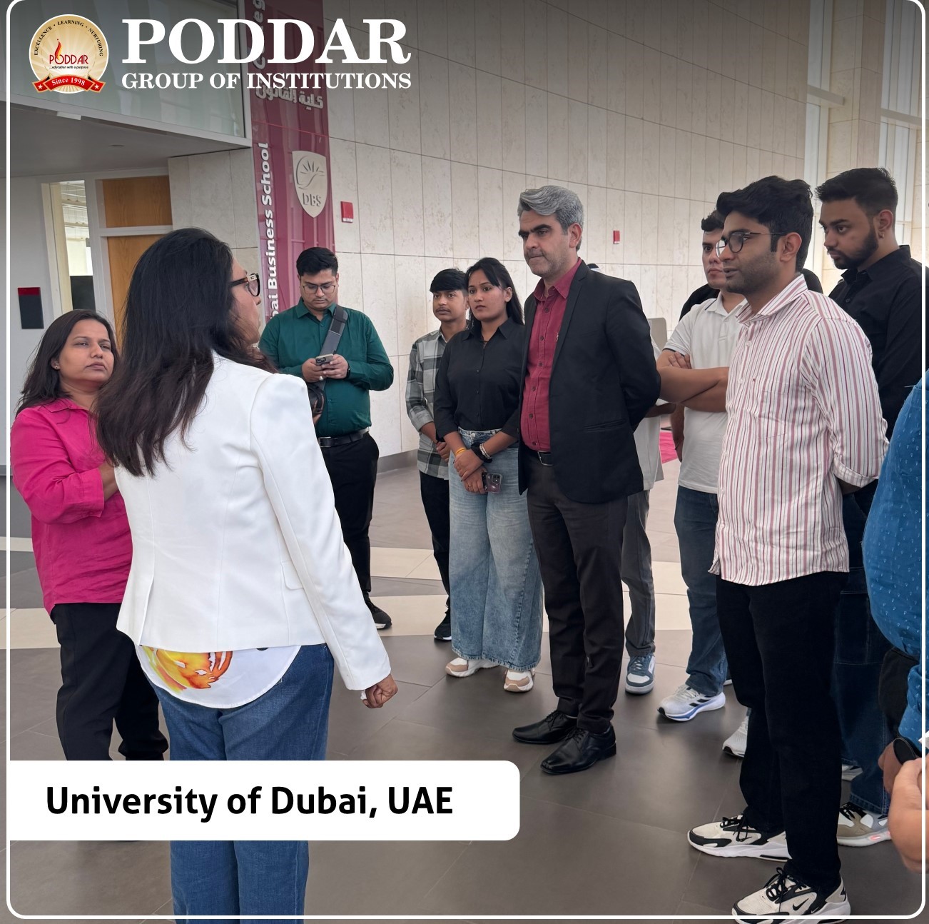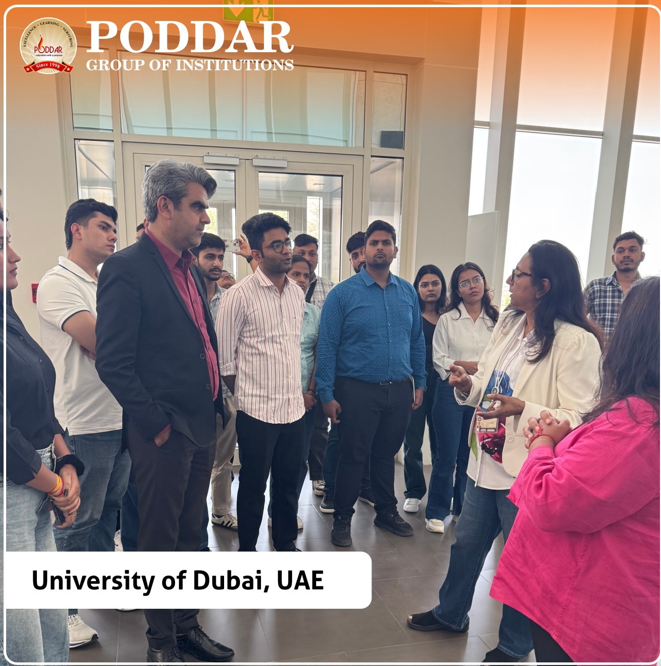 On the second day of the Global Immersion Program, PGDM students of Poddar Business School visited the University of Dubai and attended an enlightening session with Dr. Nour Aburaed, PhD on the importance of Artificial Intelligence and emerging job opportunities in the digital era.