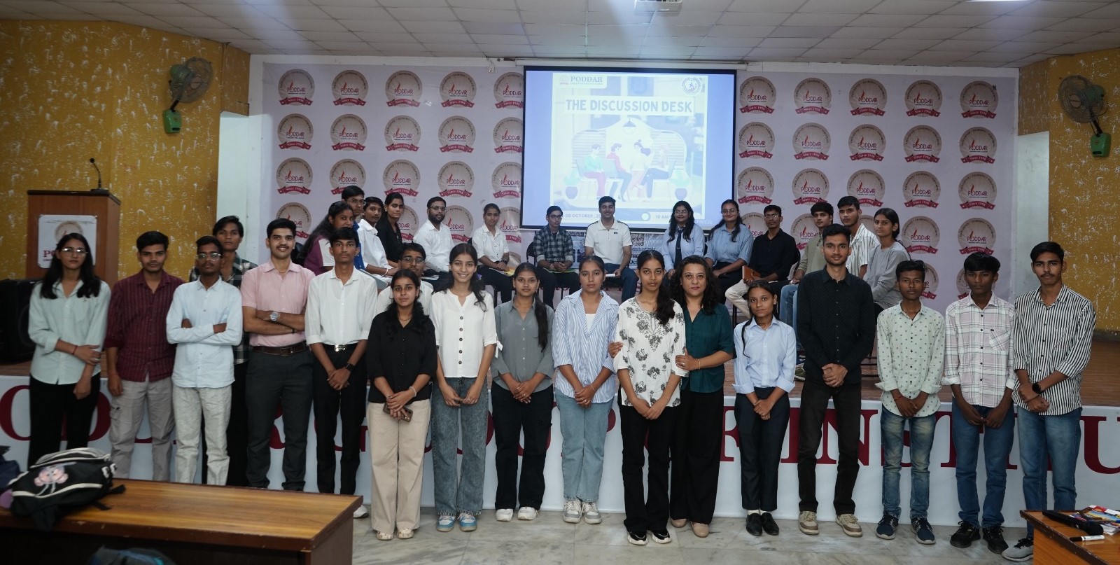 The Training and Placement Cell of Poddar International College organized "The Discussion Desk," a group discussion, for 1st Year BCA students. The session, coordinated by Ms. Anuradha Banerjee Ghosh, Head of Training, focused on two thought-provoking topics: "Success Begins in Our Mind" and "Social Media Makes Us More Connected and Isolated."