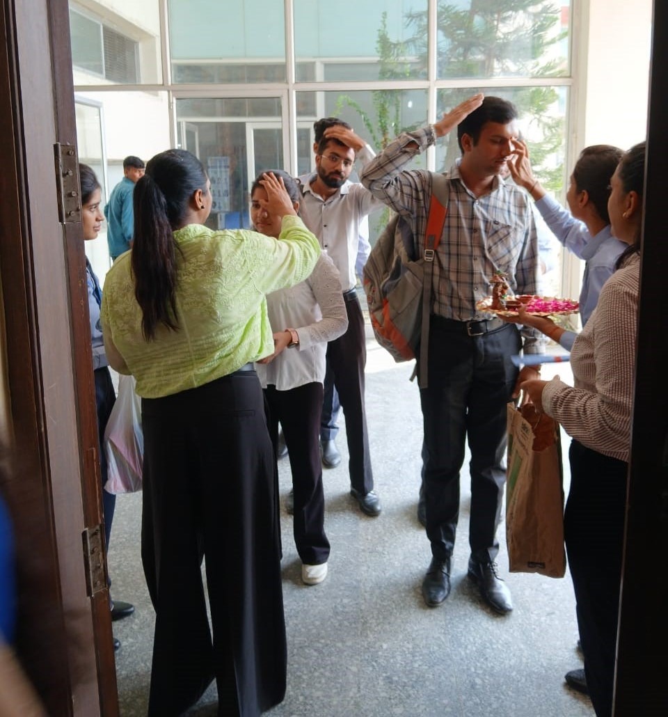 The programme began with the traditional welcome and tilak ceremony, where juniors warmly greeted the MBA III students. This was followed by the National Anthem, instilling a sense of unity and pride among all present.